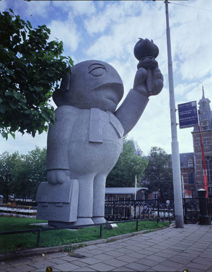 Several years ago, I invented the figure of Greyman, an anti-superhero in his combat against all that’s creative, fun and colorful. I built a huge 9 metres high grey concrete sculpture, my Statue of No Liberty. It was part of the Sculpture Biennale in Amsterdam, but I didn’t put it in its designated spot. Instead, I put it in front of the Rijksmuseum. I figured that once 8,000 kilos are somewhere, they won’t be moved easily. It remained there for almost three years. Street artists gave me a huge compliment by not spraying/taging anything on it.