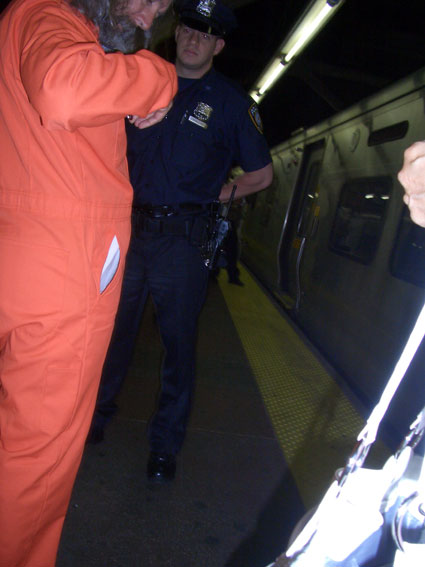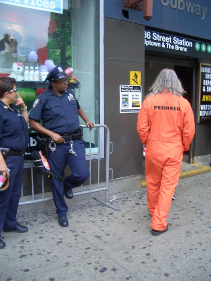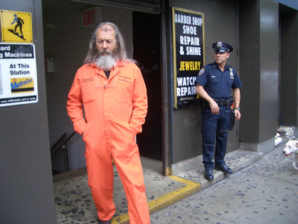 June, 2007: New York City Police do not care for artist, activist Joey Skaggs’ attire: