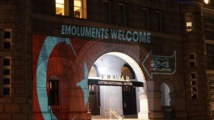“Artist Projects ‘Pay Trump Bribes Here’ Message on President’s DC Hotel”