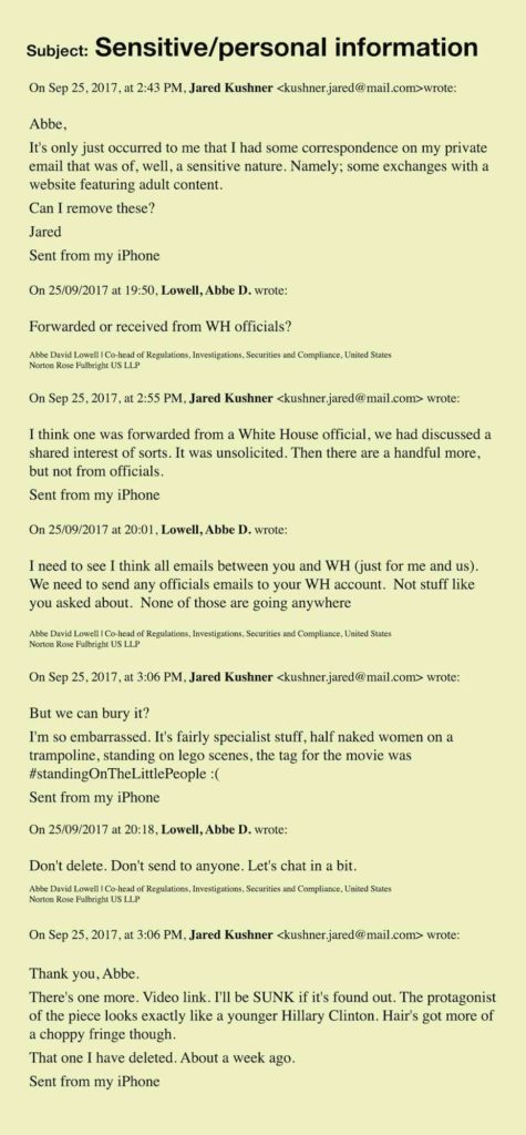 “Prankster tricks Jared Kushner’s lawyer into believing he had Lego fetish porn on his private server”