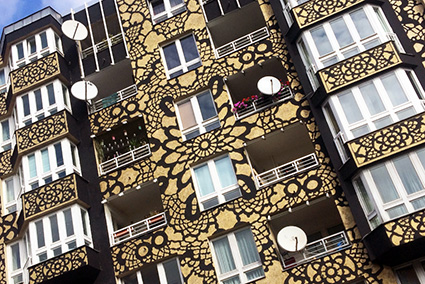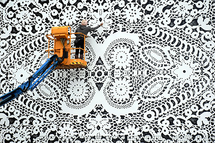 Street art with a difference: Artist creates spectacular wall-art doilies