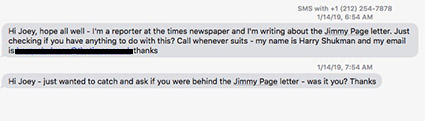 “The Times is reporting today (15th January) that Joey Skaggs has admitted the complaint to Kensington and Chelsea Council about Robbie Williams and Jimmy Page was his hoax. Has Mr Skaggs admitted that to be the case?”