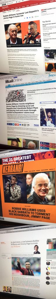 So, where does that leave Jimmy Page and Robbie Williams who have both been massively maligned by both the news media and readers who can’t refrain from weighing in on any controversy? Do an online search for “Jimmy Page Robbie Williams” and you’ll see what a wild ride they had.