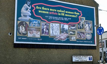 GUERRILLA GIRLS, the anonymous group of US feminist female artists devoted to fighting sexism and racism within the art world, are bringing their unique form of “culture jamming” to billboard displays across Britain.
