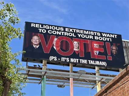 PHOENIX — On a billboard that looms over the Grand Avenue arts district, artist Karen Fiorito has installed artworks decrying abortion bans and obstructionist politicians. One side of the billboard features the five conservative Supreme Court Justices who voted to overturn Roe v. Wade, and the other highlights 11 politicians who’ve opposed legislation aimed at improving education, health care, voting rights, and more. Read the whole article here.